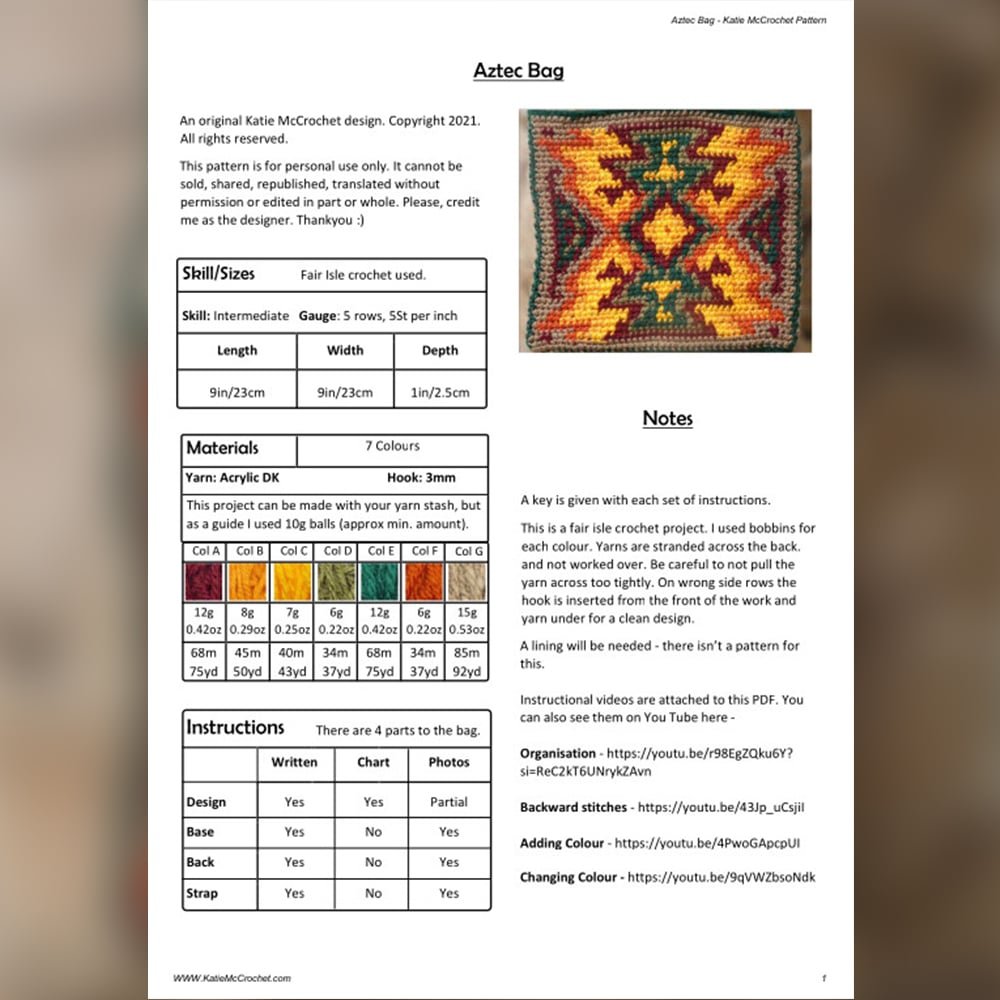 Be the first to review “Aztec Bag Fair Isle Crochet Pattern”