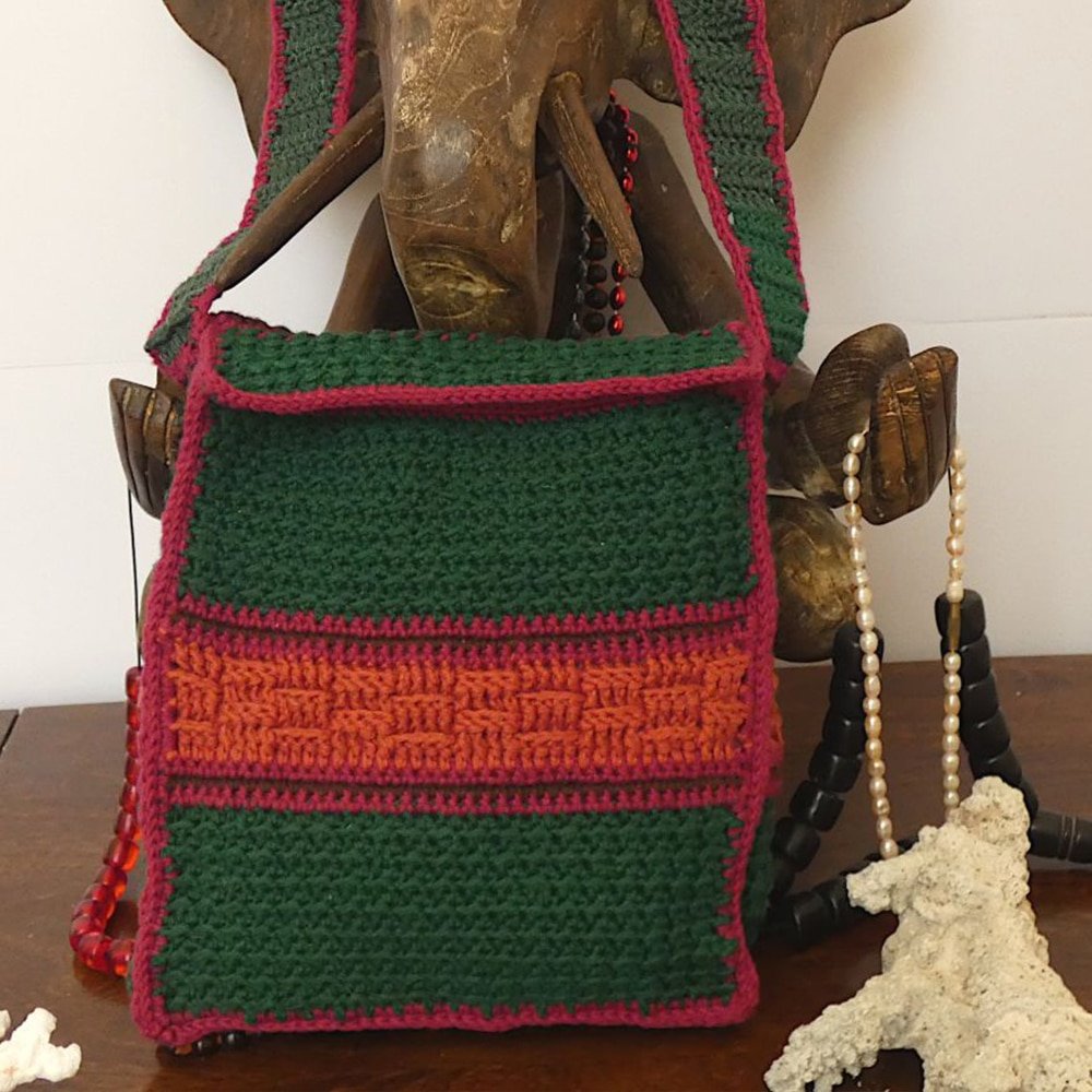 Because the project is worked in panels that are later joined with slip stitches, the construction remains straightforward and beginner-friendly. The strap is crocheted directly into the bag, eliminating extra sewing and giving the finished piece a polished look.