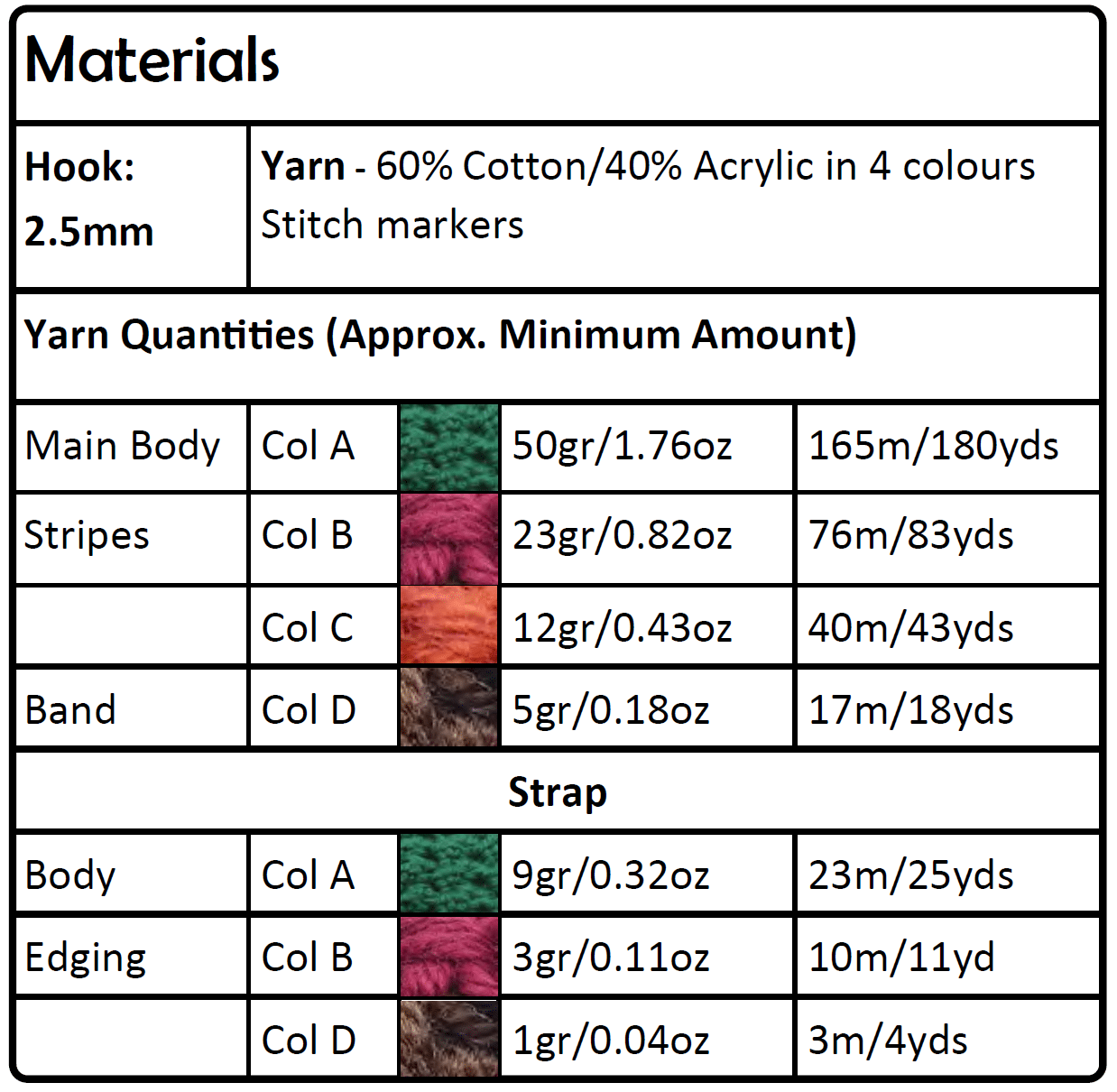 - Materials: 60% Cotton/40% Acrylic – 4 colours