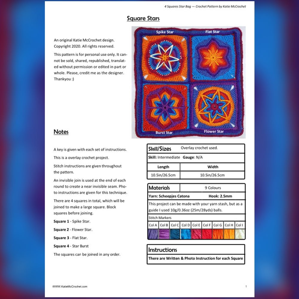 This overlay crochet star square pattern comes in a concise, detailed PDF that includes: