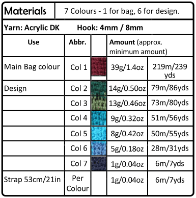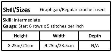 This Graphgan crochet bag measures approximately 8.25 inches (21 cm) in height and 9.25 inches (23.5 cm) in width. The depth of the bag can easily be customized by adding extra rows to the sides.
