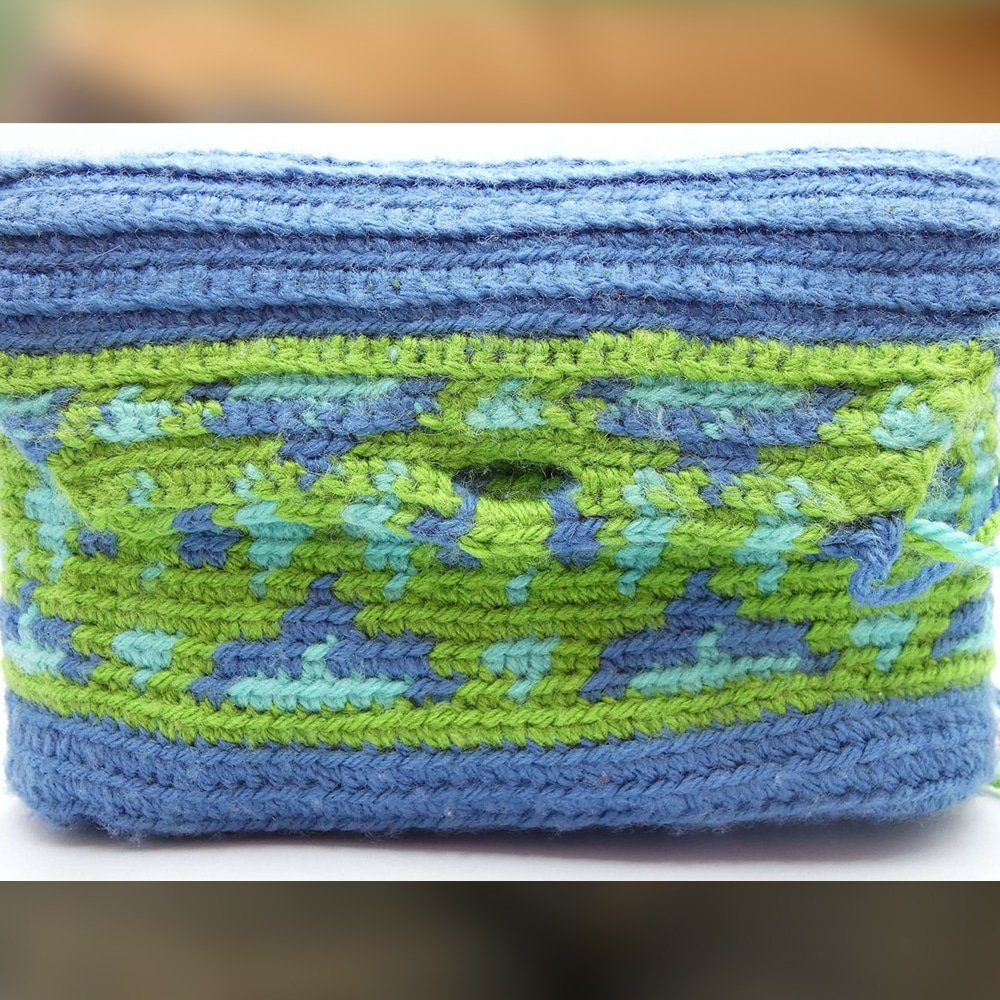 The strength and beauty of this bag come from tapestry crochet, a technique that produces a dense, sturdy fabric. This makes your finished bag long-lasting and ideal for daily use. By working with double crochet stitches (US single crochet) in alternating front and back loops, the bag is constructed from the base upward. The sides are worked seamlessly in rounds, creating a continuous design that requires no sewing—a huge advantage for those who love neat finishes.